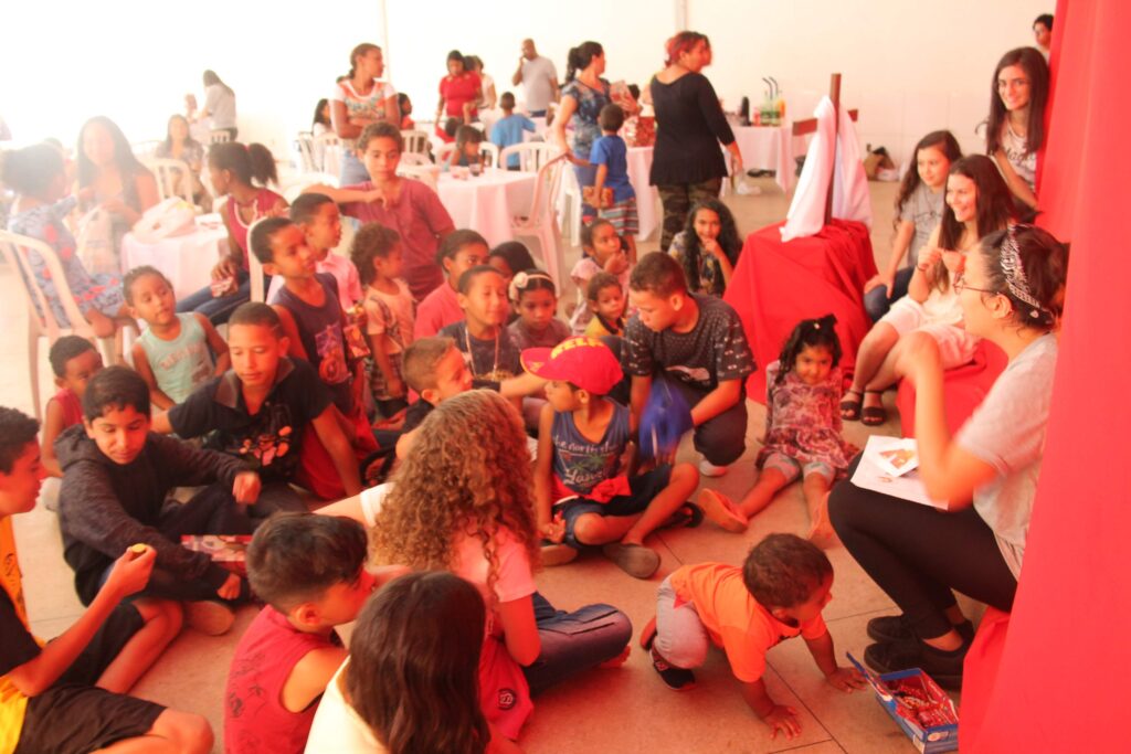Comemoramos a Páscoa de Jesus com um delicioso café da manhã, entrega de chocolates para as crianças, cestas básicas para as famílias e bazar aberto para todos os assistidos.