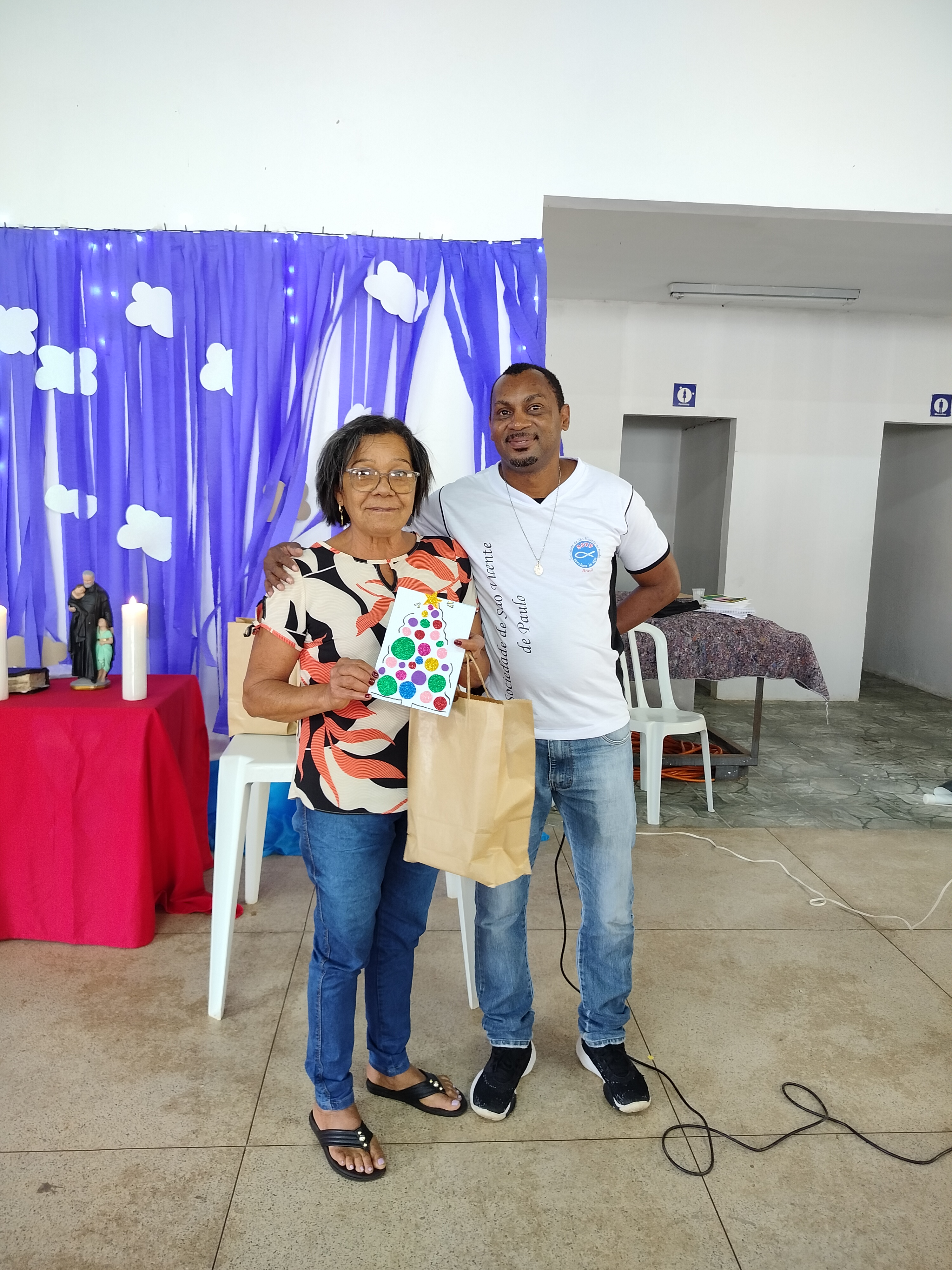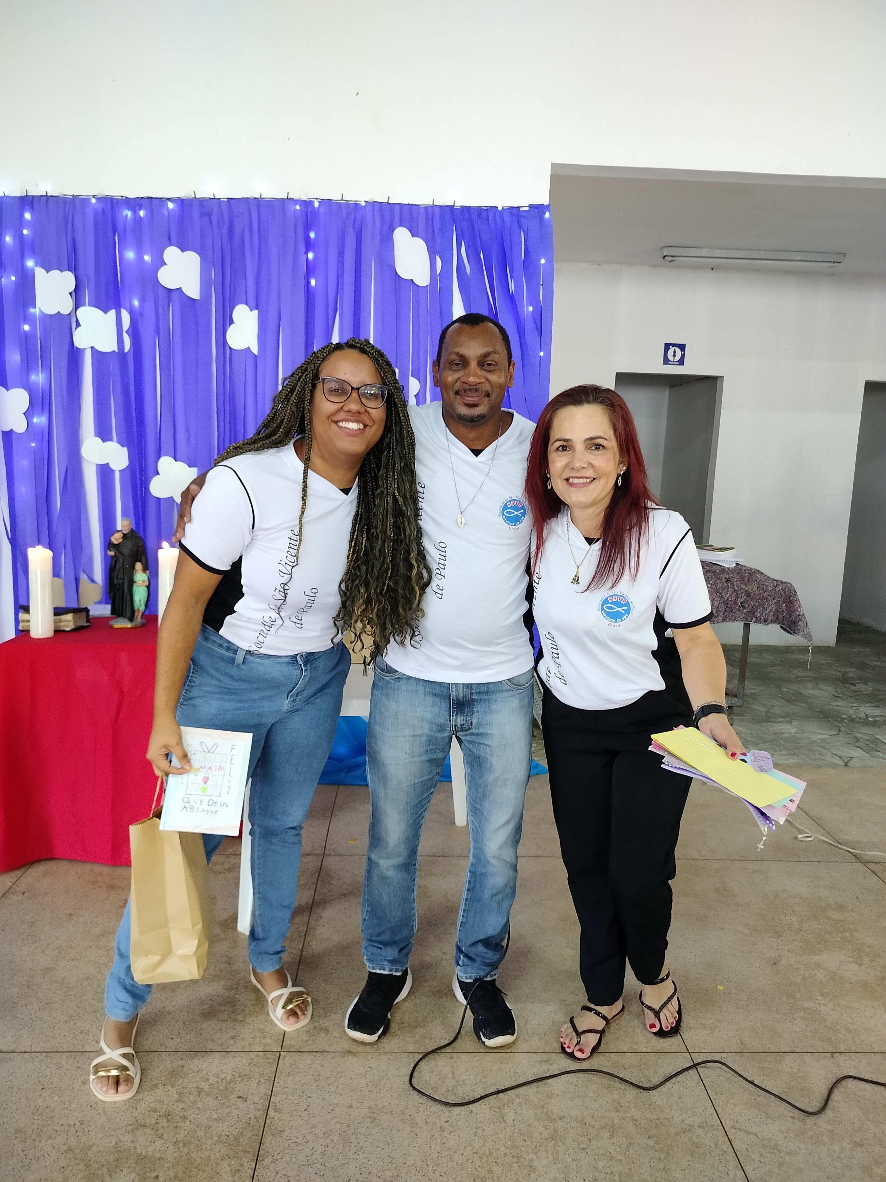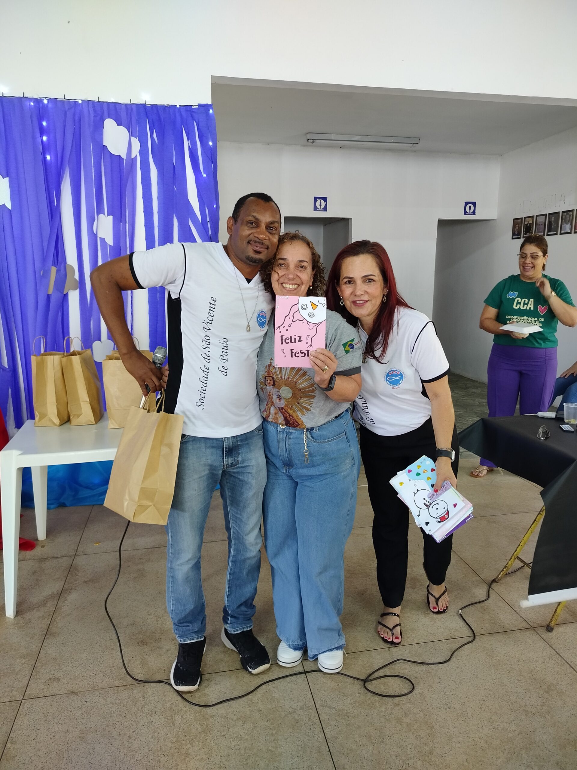 Depois, houve o momento de Aclamação dos novos confrades e consócias da SSVP, com os novos membros sendo recebidos com muita alegria e celebração! Seguiu-se com o sorteio de brindes e entrega de cartões natalinos elaborados pelas crianças da CCA.
