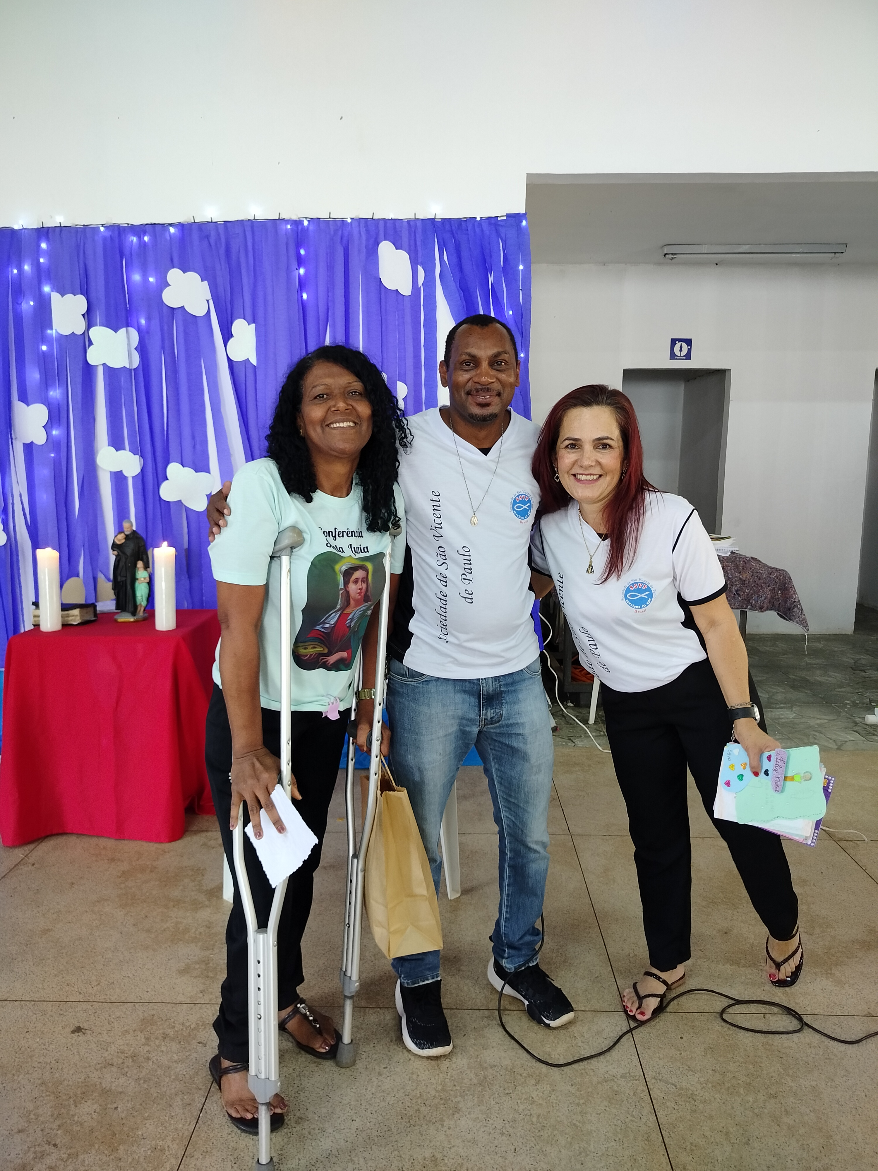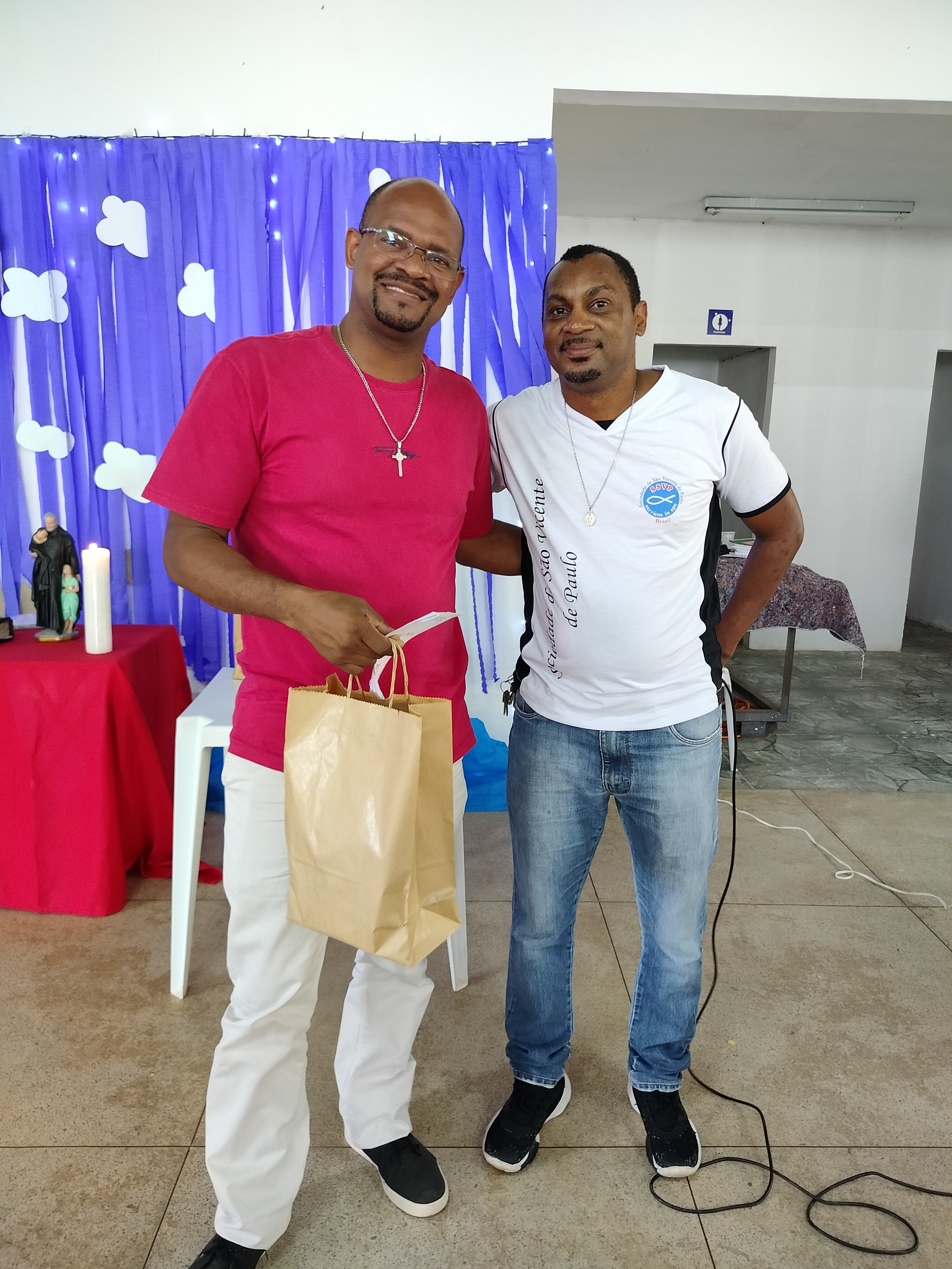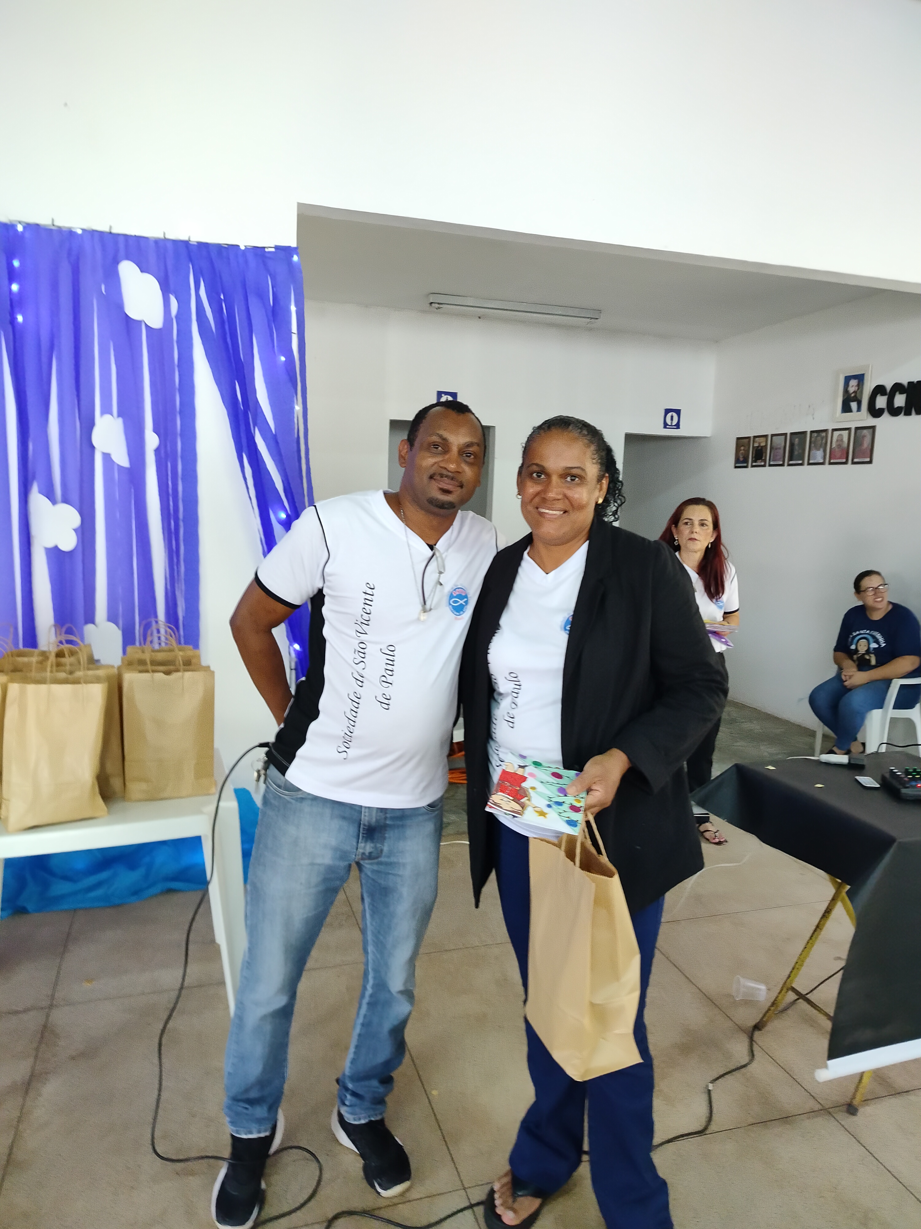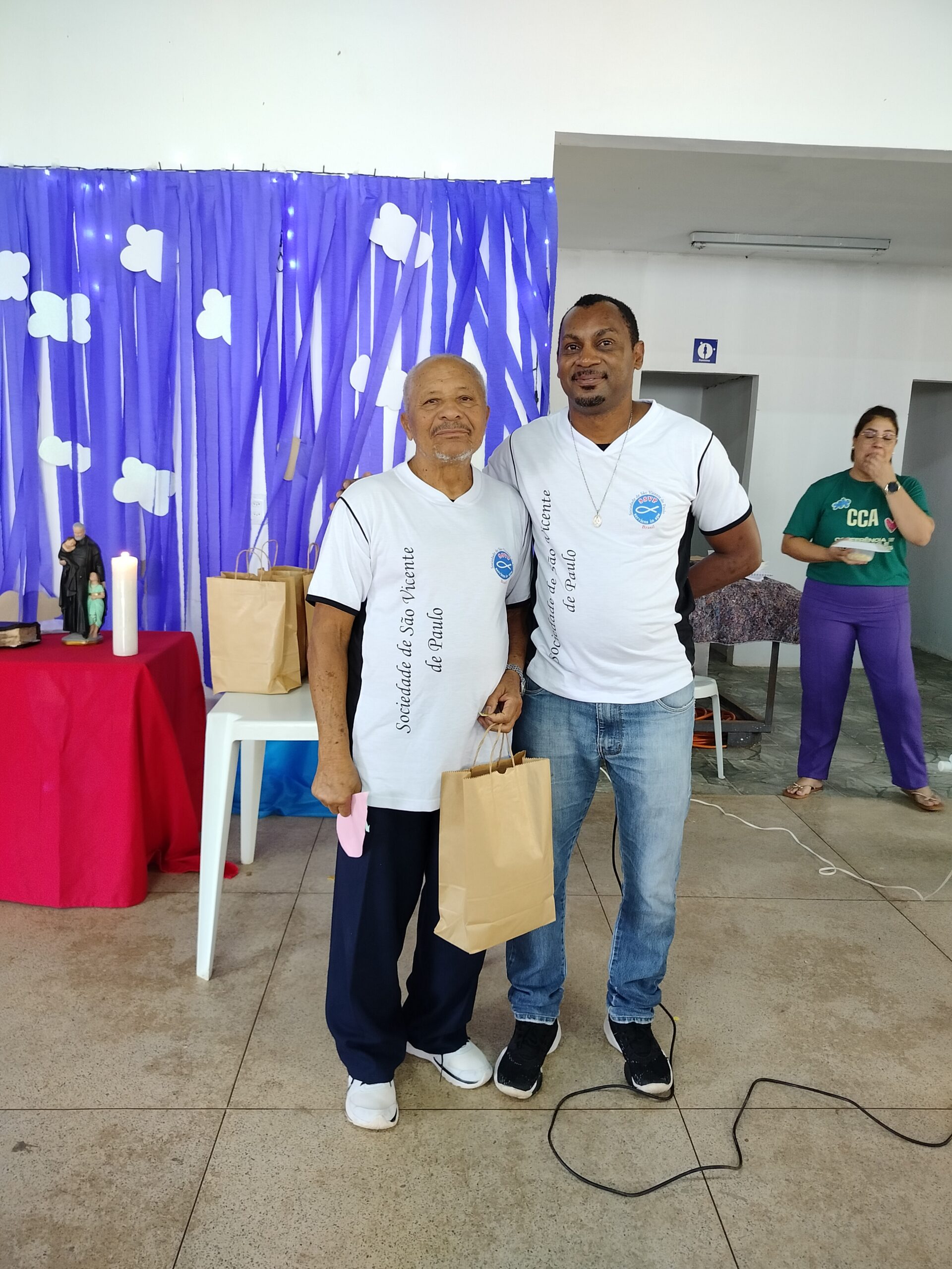 Depois, houve o momento de Aclamação dos novos confrades e consócias da SSVP, com os novos membros sendo recebidos com muita alegria e celebração! Seguiu-se com o sorteio de brindes e entrega de cartões natalinos elaborados pelas crianças da CCA.