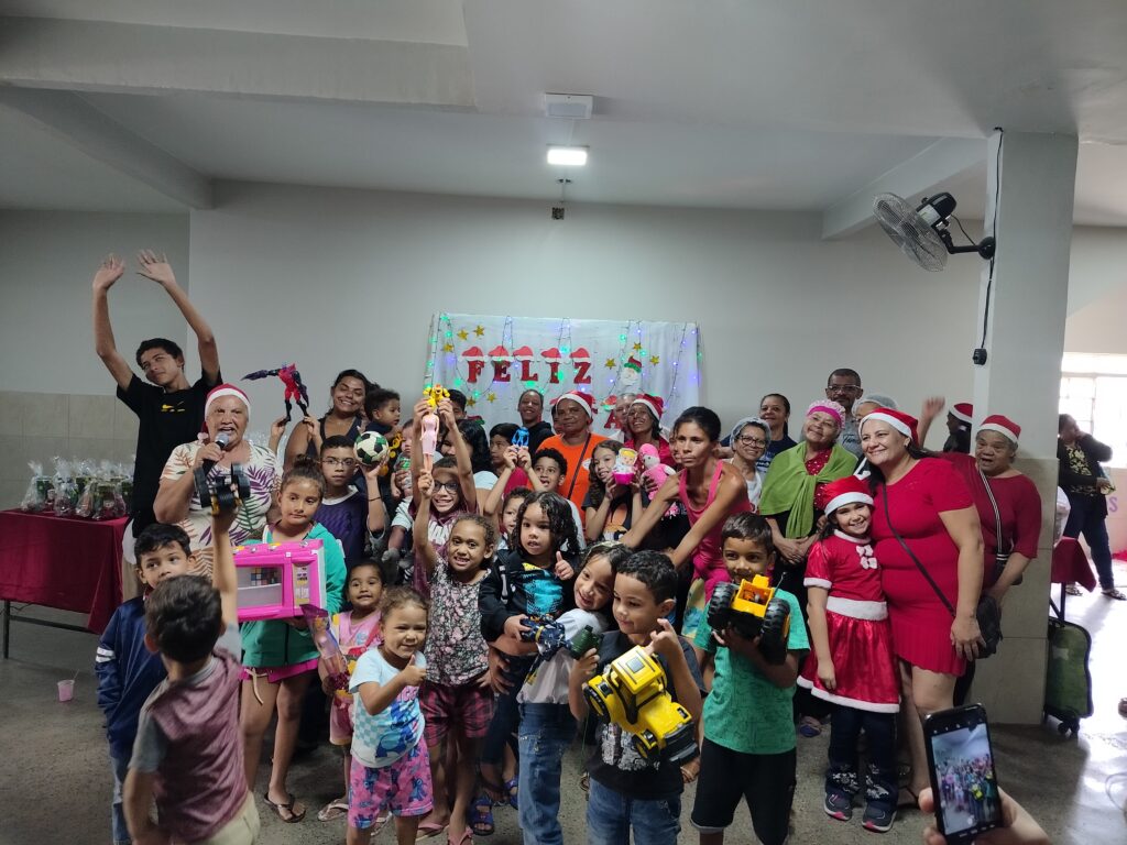Logo após, houve a entrega dos presentes de natal para as crianças e a distribuição das cestas e kits natalinos!
